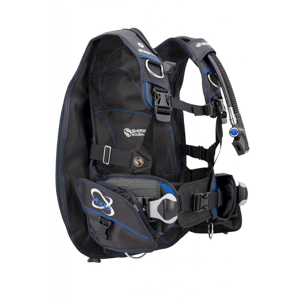 The Sherwood Axis BCD is quite possibly the best fitting BCD you will ever try on. Sherwood’s new Three Point Harness (3PH) allows the Dive Center to make additional micro adjustments to the waistband, shoulder straps, and cummerbund that all provide the diver a comfortable fit, but more importantly it provides the diver a stable BC. The Axis pulls the scuba cylinder right up against the small of your back and eliminates all tank shifting. This BC is one of a kind.